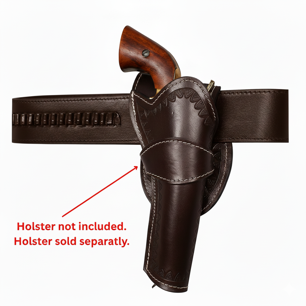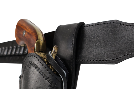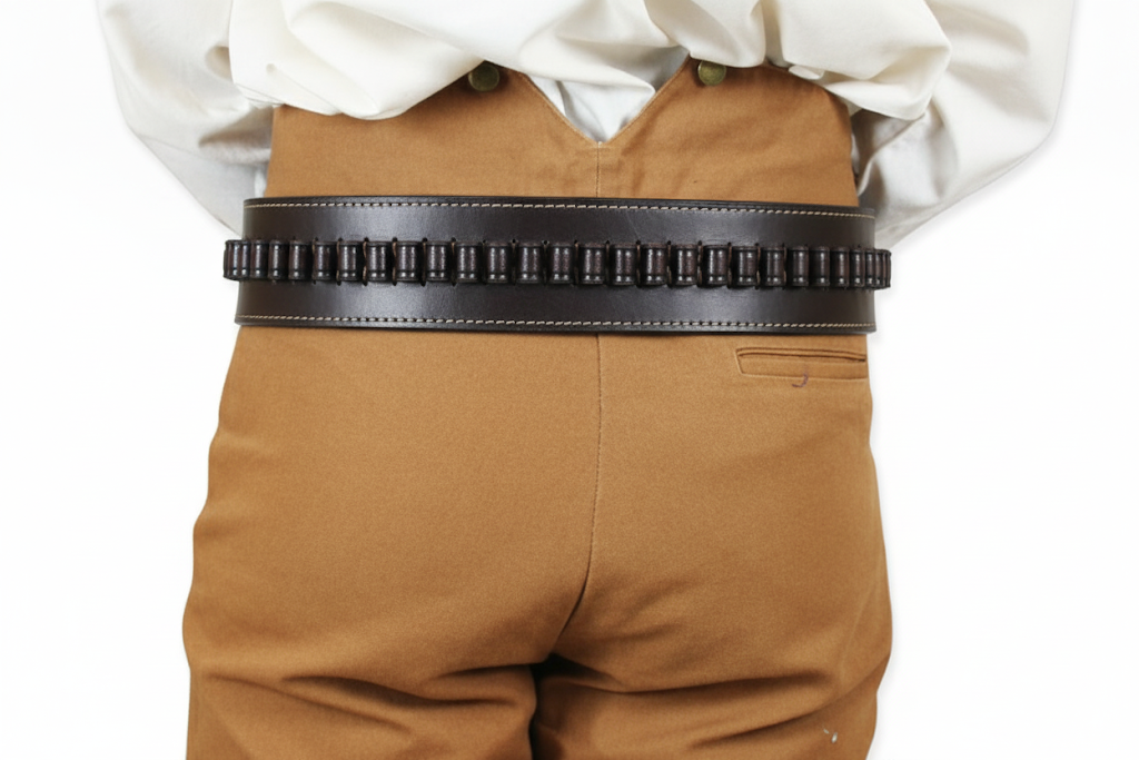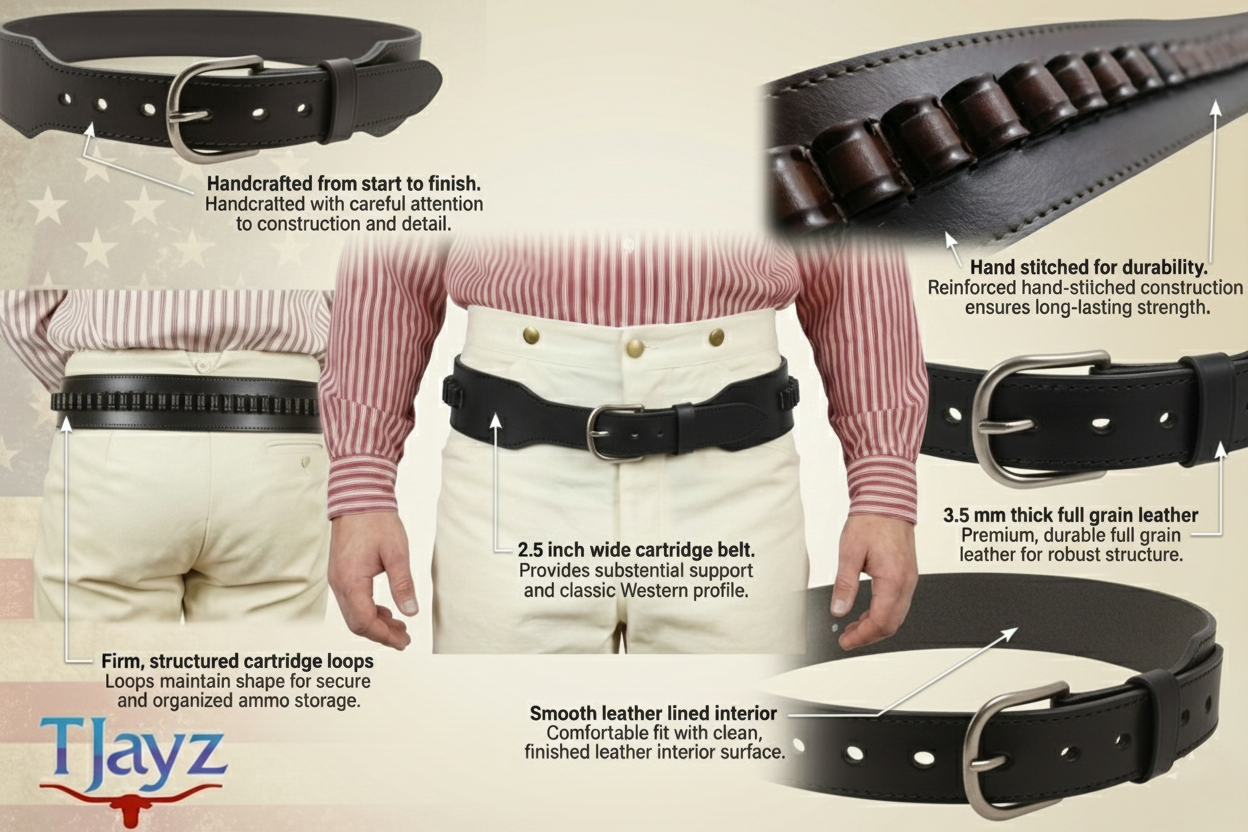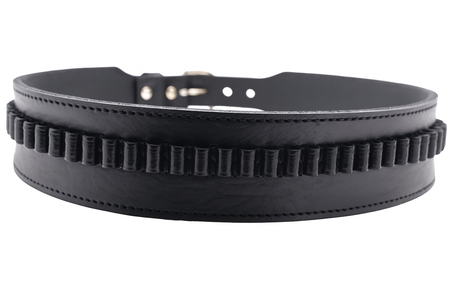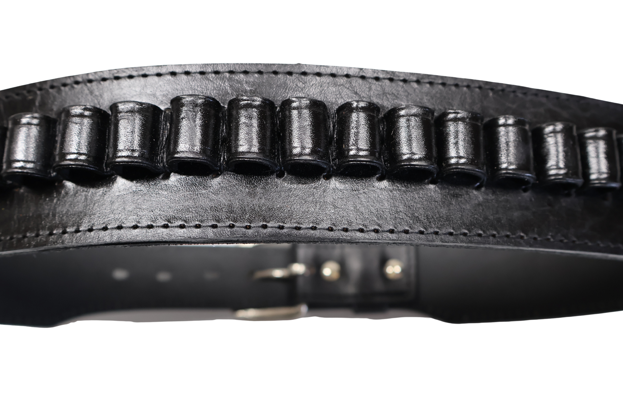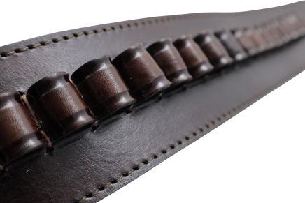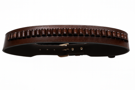 This Unique Smooth Western Cartridge Belt comes with hand stitched bullet hoops, sized using a bullet case for the most accurate fit. Cartridge belts measures 2.5 inches wide with a heavy gauge silver tone belt buckle. Available waist sizes, 34" to 52" and comes in your choice of black and chocolate brown.